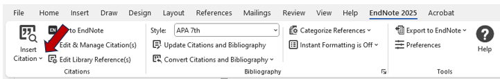 1. Under the EndNote 2025 tab in Word, go to the Style drop-down menu.